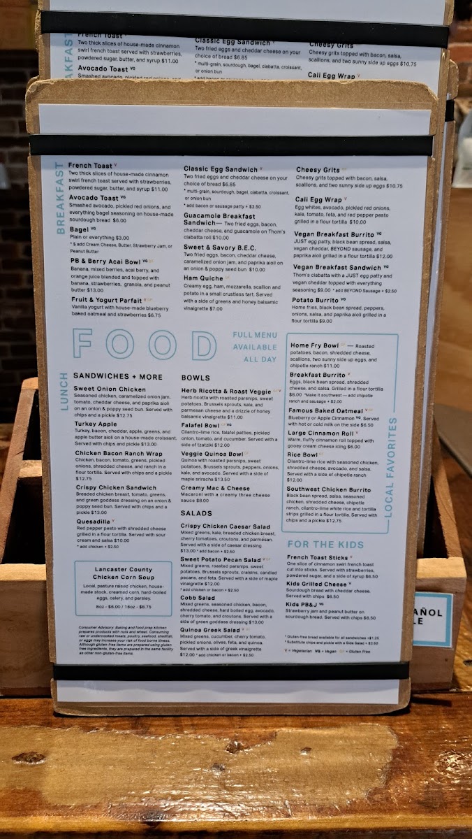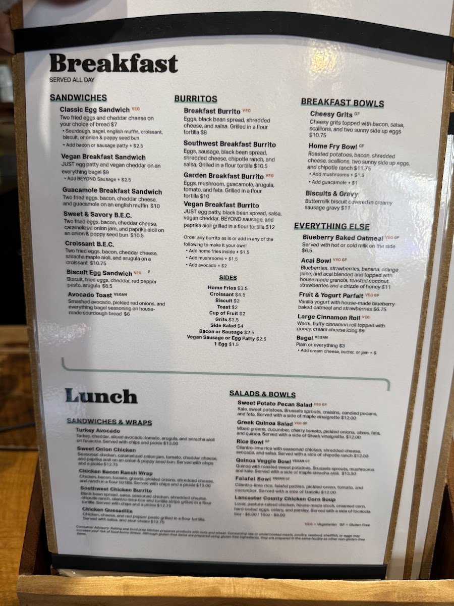 The variety includes both classic and plant-based options, allowing visitors to pick meals that suit their mood and dietary preferences. Light pastries and house-made baked oatmeal offer small comforts, while more substantial choices like the Southwest Breakfast Burrito or the cashew chicken salad cater to those looking for a fulfilling meal.